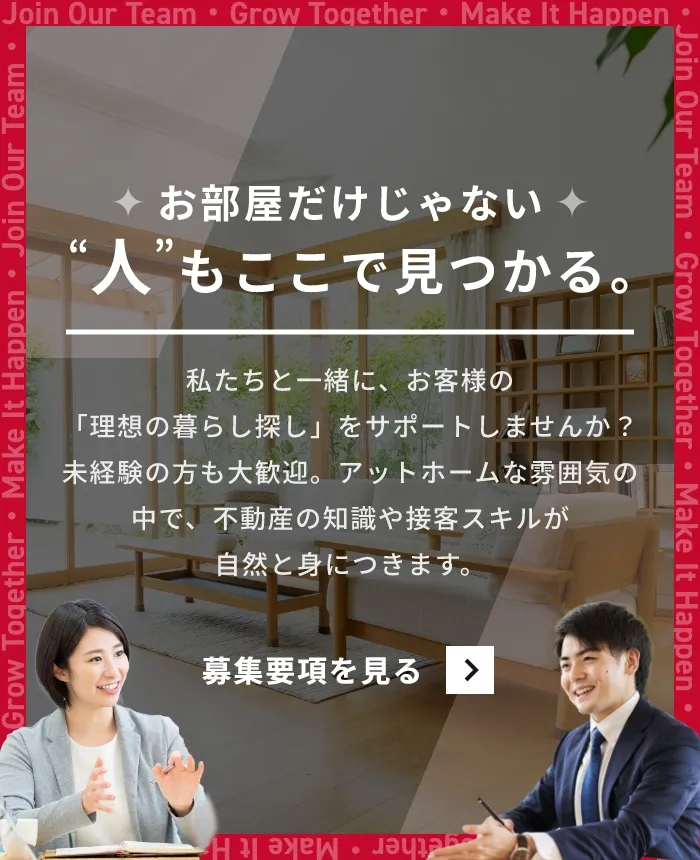 豊富な物件情報と地域密着のスタッフが、お客様の理想の住まい探しをサポートします。