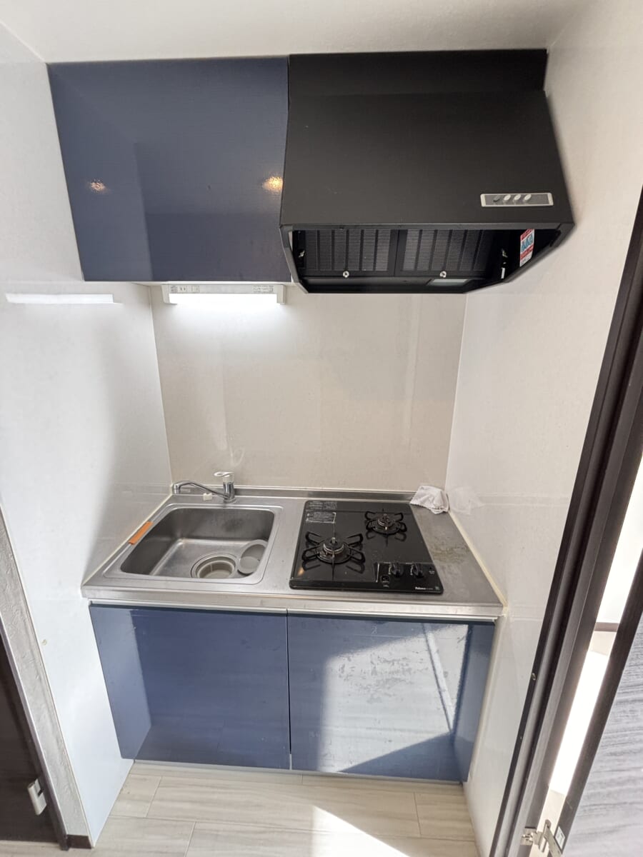 居室から独立したK(キッチンスペース)には、料理好きには嬉しいガスコンロが2口設置済み!一人暮らし用の物件では1口コンロが多い中、2口あれば同時に複数の調理が可能で、自炊の幅が広がります。