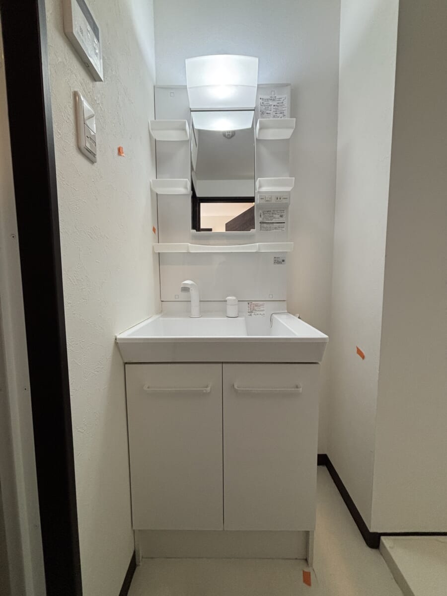 さらに、洗面台も独立しています!朝の忙しい時間帯も、お風呂場を気にせず顔を洗ったり、メイクをしたりといった身支度がスムーズに行えます。鏡裏や下の収納スペースも活用でき、化粧品や日用品を整理しやすい点も嬉しいポイントです。