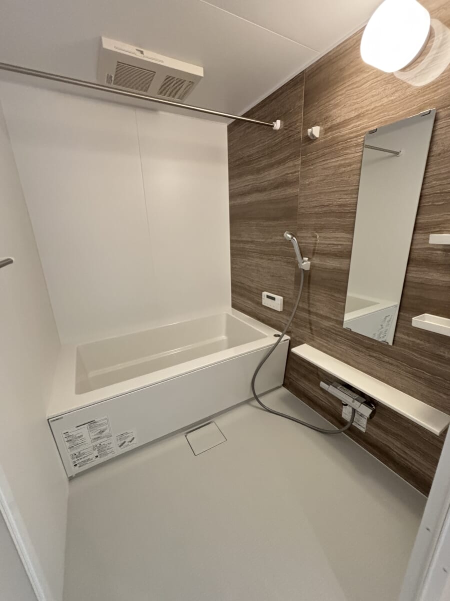 2025年10月完成の新築物件であるため、水回り全体が清潔で気持ちよくお使いいただけます。充実した設備を備えたバスルームで、質の高い入浴時間をお楽しみください。