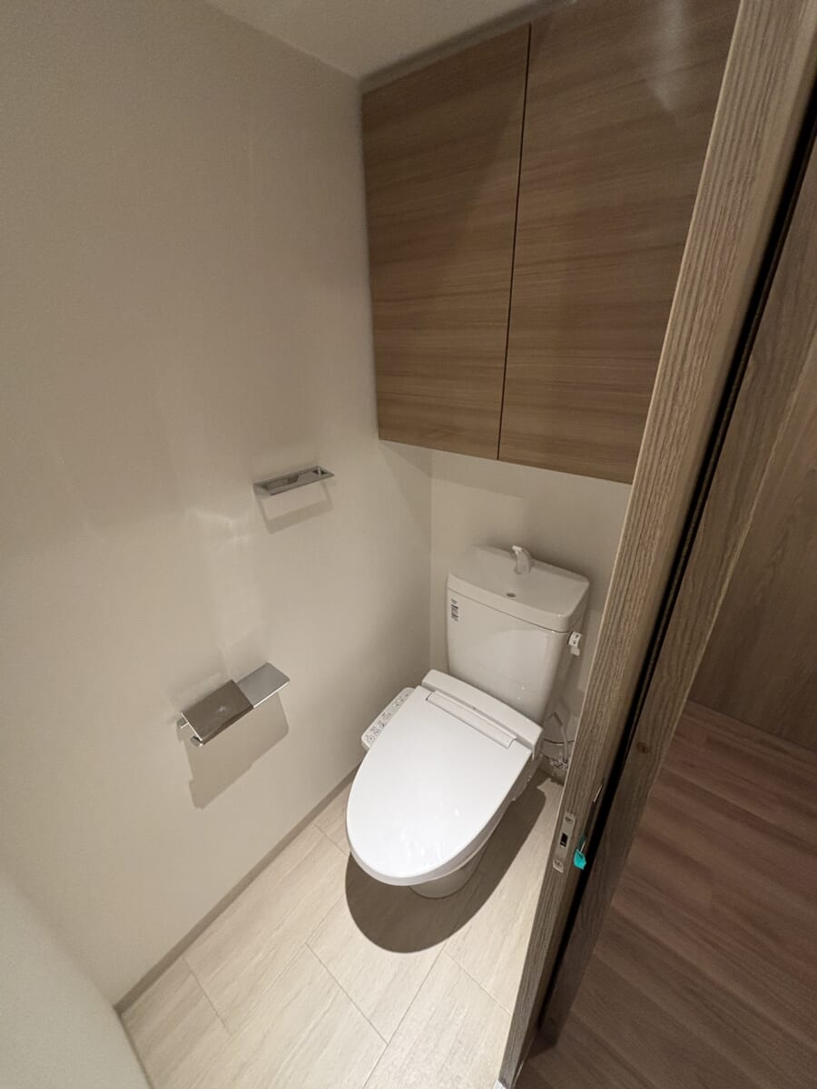 トイレには温水洗浄便座を標準装備し、いつでも清潔にご利用いただけます。新築ならではの美しい空間が、日々の快適な暮らしを支えます。