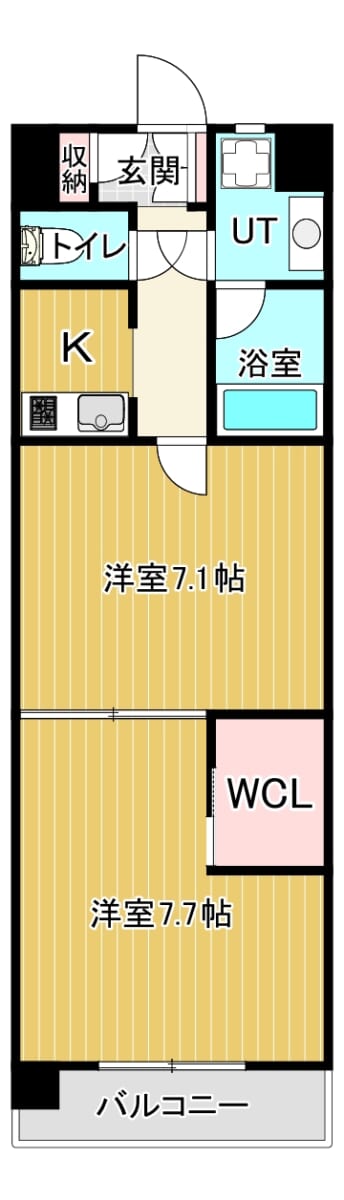 | 参考部屋タイプ | 7階|2K|46.5 m2 |