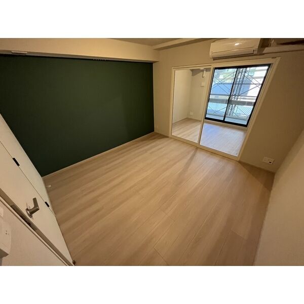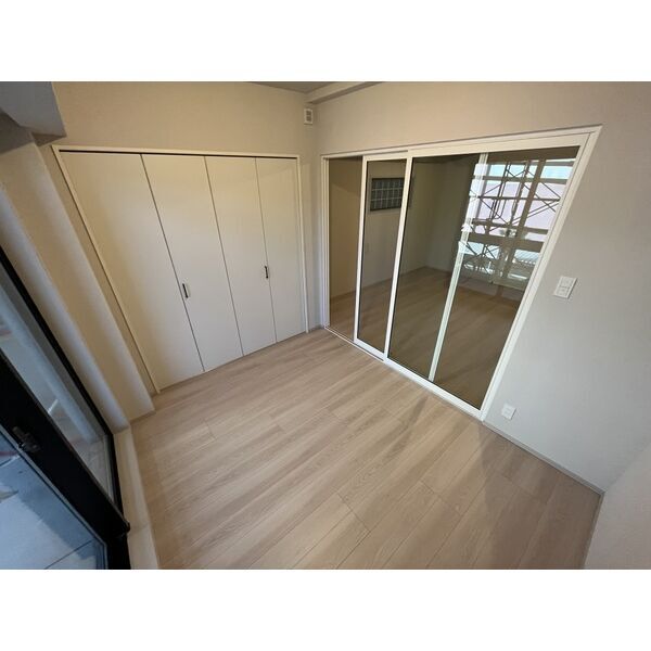 「THE MUSIC COURT」の洋室は、単なる寝室ではなく「表現者のためのプライベートスタジオ」として設計されています。7階2K住戸の洋室は、新築ならではの清潔感と、無駄を削ぎ落としたスタイリッシュなデザインが特徴です。