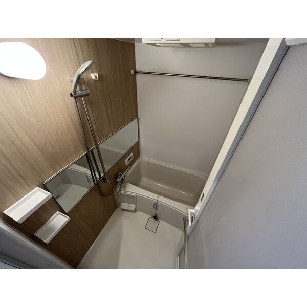 清潔感あふれる広々としたバスルームには、新築物件ならではの最新設備が凝縮されています。天候や時間を気にせず洗濯物を乾かせる浴室乾燥機は、忙しいクリエイターにとって欠かせない味方。さらに、冬場に嬉しい暖房機能も完備されています