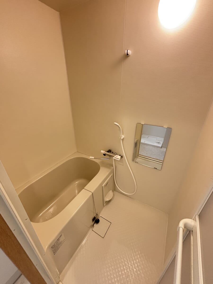 コンパクトにまとめられた浴室は、お湯を溜める際も効率的で、光熱費を抑えながら毎日気軽に入浴を楽しめる経済的なサイズ感。さらに、余計な凹凸が少ないシンプルな造りなので、水垢や汚れが溜まりにくく、サッと流すだけで清潔さを維持できるのも嬉しいポイントです。「掃除は手短に、リラックスは最大限に」という、忙しい現代のシングルライフに理想的な浴室設計。余計な刺激のない静かな空間で、体だけでなく心まで解きほぐす、上質なひとときをお過ごしください。