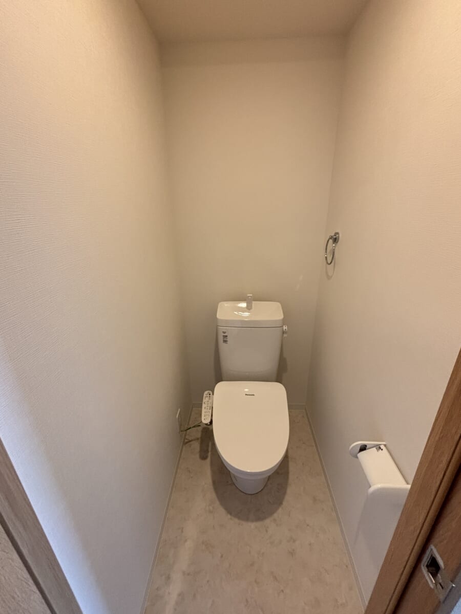 浴室としっかり分かれたセパレートタイプのトイレは、単身生活の質を大きく高める重要ポイントです。居室から少し離れた位置に配置されているため、来客時も生活音を気にせず利用でき、プライバシーをしっかり守れる安心感があります。コンパクトな空間ながら独立していることで、掃除用具などもスマートに収納でき、常に清潔な状態を維持しやすいのが魅力。衛生面を重視し、オンオフの切り替えを大切にする方に最適な配置です。