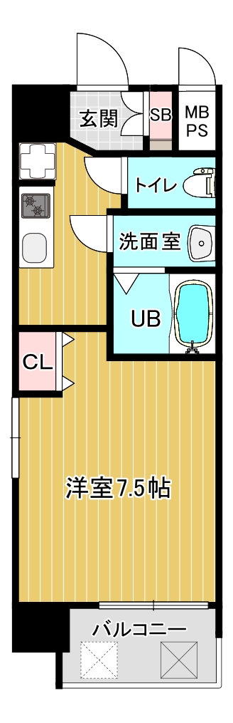 居室部分は7帖以上の広さがあり、注目すべきは「部屋の四隅に柱が出っ張っていない」点です。