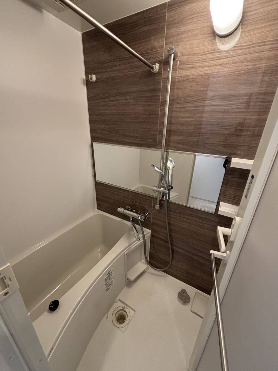 一人暮らし向け物件としては十分な広さの浴槽で、足を伸ばしてリラックスできます。