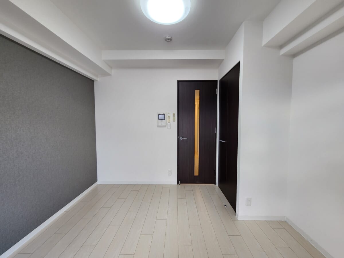 この物件のメインとなる洋室は、一人暮らしにジャストなサイズ感と、築浅ならではの洗練されたデザインが特徴です。
