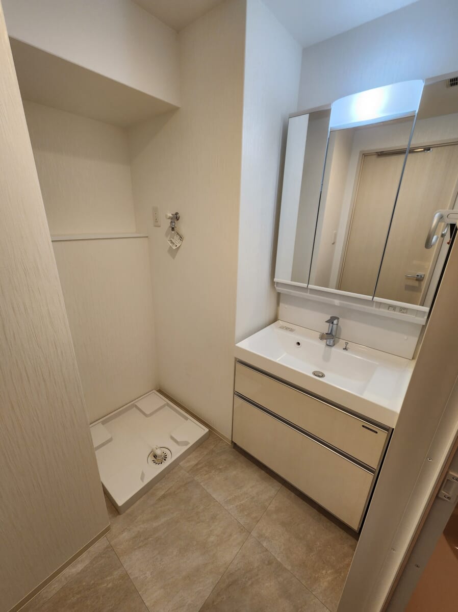 バスタイムの前後に過ごす脱衣所こそ、生活の質(QOL)が大きく現れる場所です。「プレジオ帝塚山」の洗面室は、ゆとりある広さと、洗練された設備が整っています。