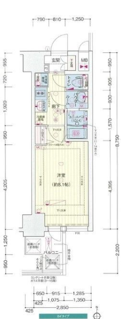 | 参考部屋タイプ | 4階|1K|24.93㎡ |